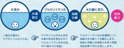 「洗濯中の水を洗浄能力をもつ水に変えてしまおう」